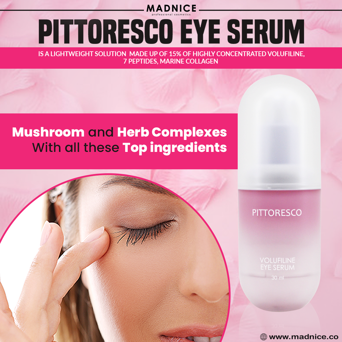 Unlock the secret to youthful, radiant skin with Madnice Volufiline Eye Serum by Pittoresco.
